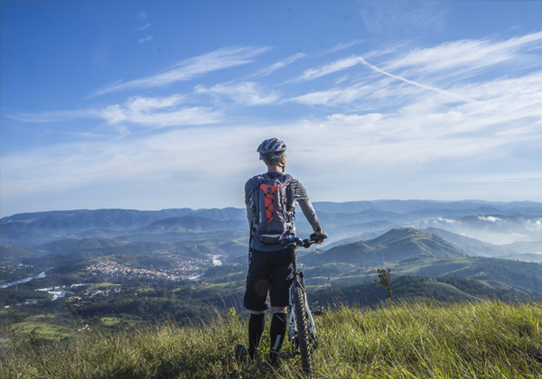 Radfahren sportlich in den Bergen oder gemächlich an einem Fluss.